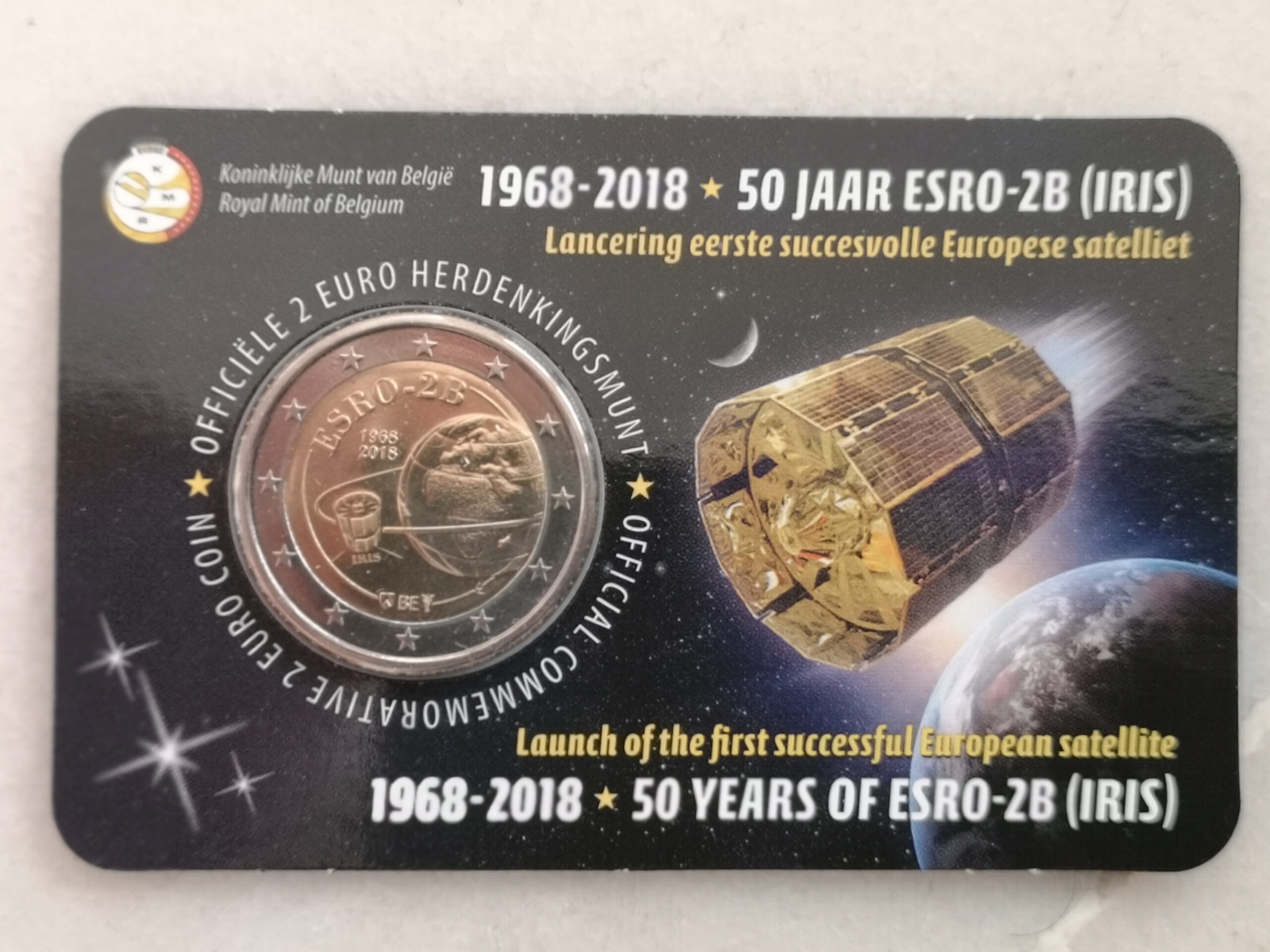 2 euro 2018 Belgio Coincard Lancio del Satellite FDC v. francese