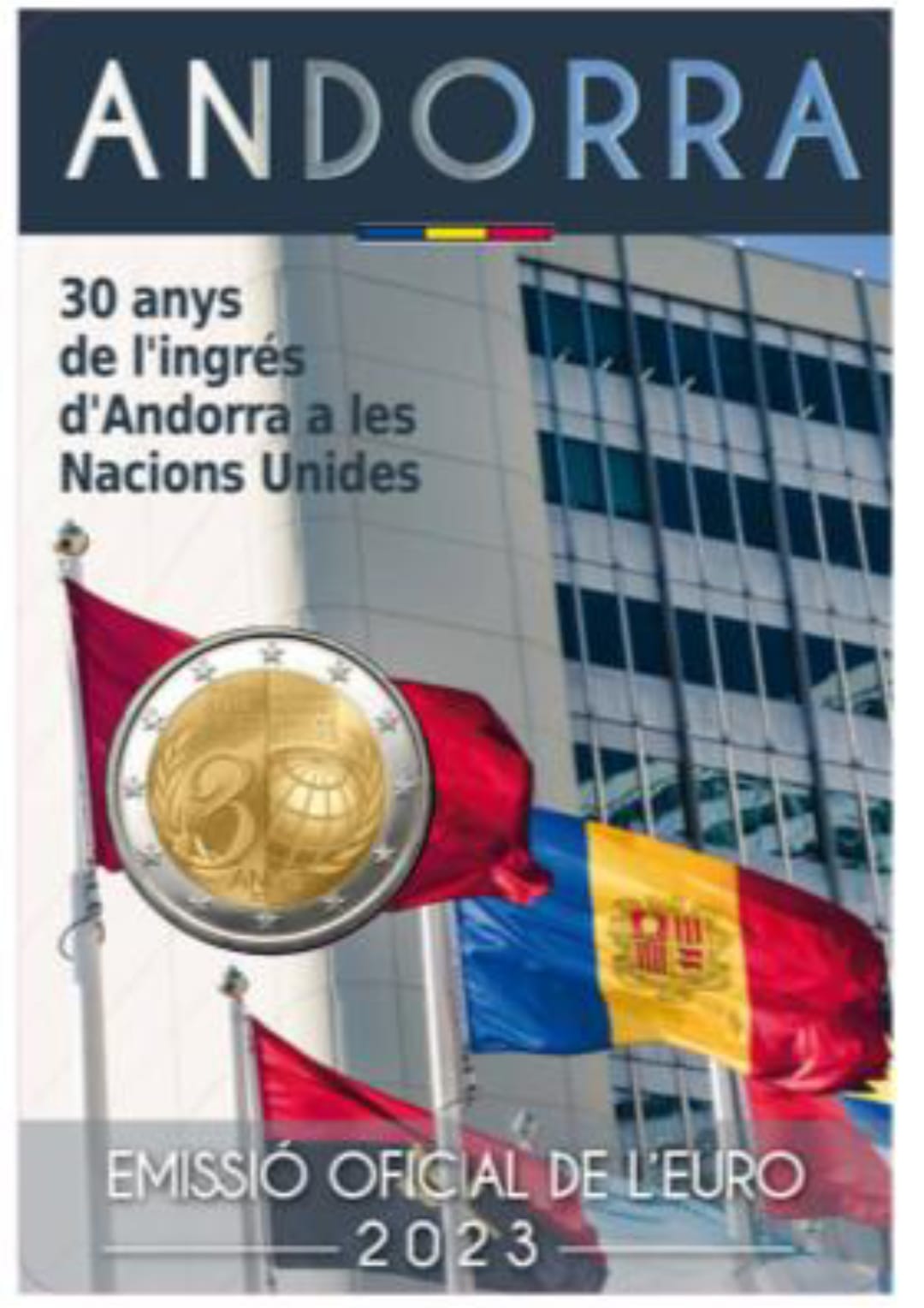 2 EURO ANDORRA 2023 30° INGRESSO NAZIONI UNITE IN FOLDER UNC FDC