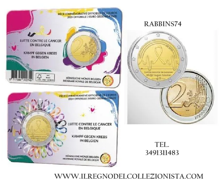 2 EURO BELGIO 2024 COINCARD VERSIONE OLANDESE FDC LOTTA CONTRO IL CANCRO