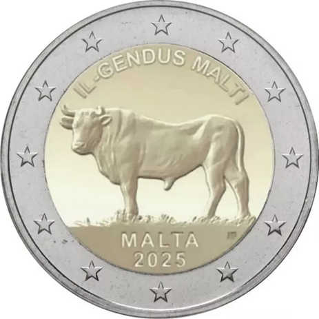 2 EURO MALTA 2025 BUE MALTESE 1 MONETA FDC SFUSA