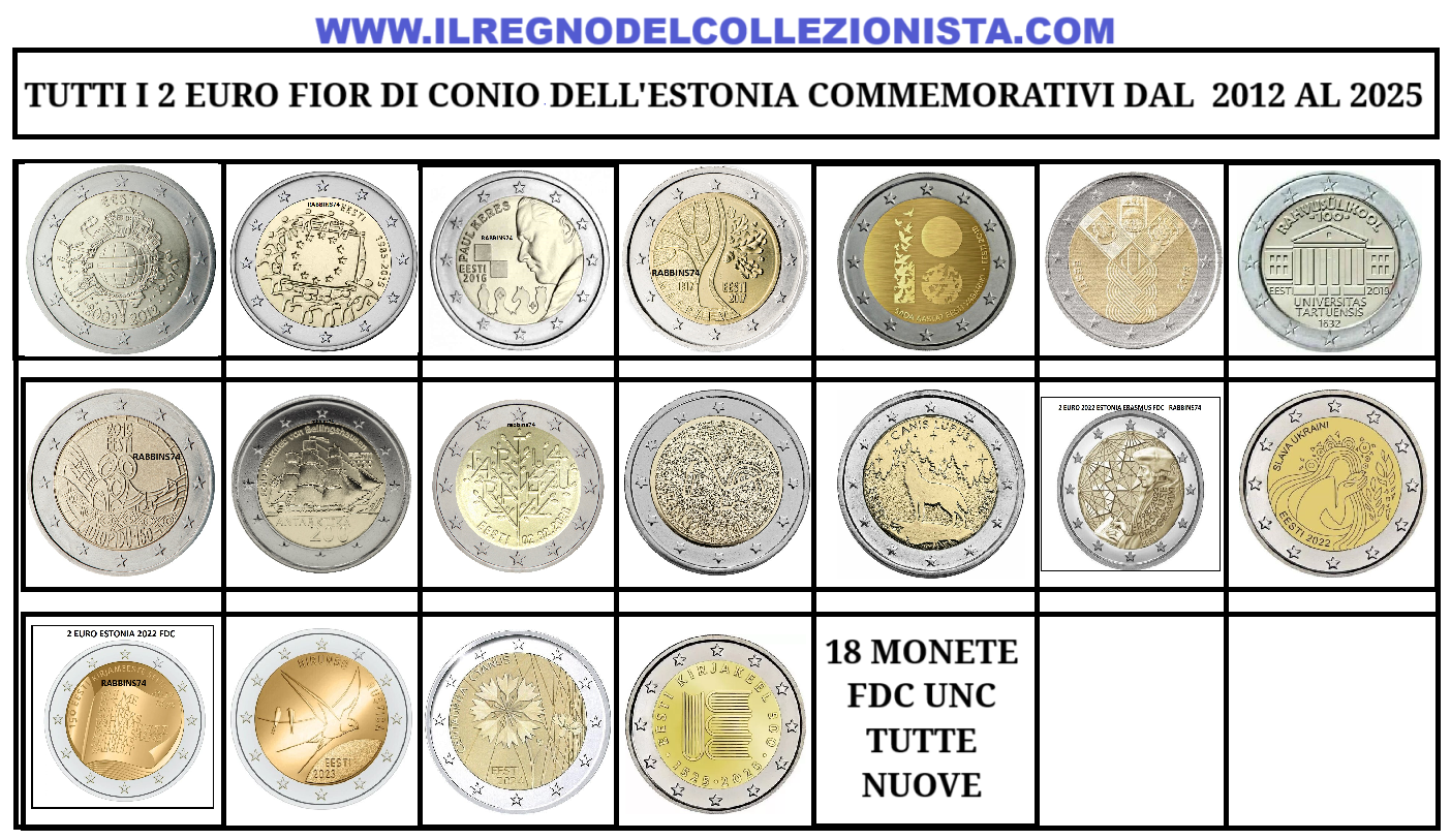 ESTONIA TUTTI I 2 EURO COMMEMORATIVI DAL 2012 AL 2025 COMPRESO FDC