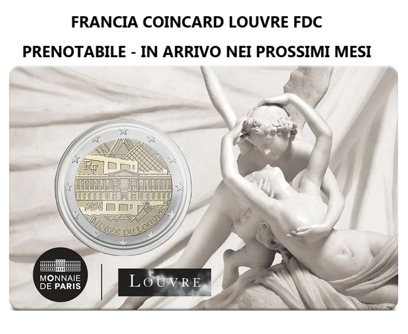 FRANCIA 2 EURO 2025 IN COINCARD LOUVRE FDC – STRATOSFERICA GIA’ DISPONIBILE