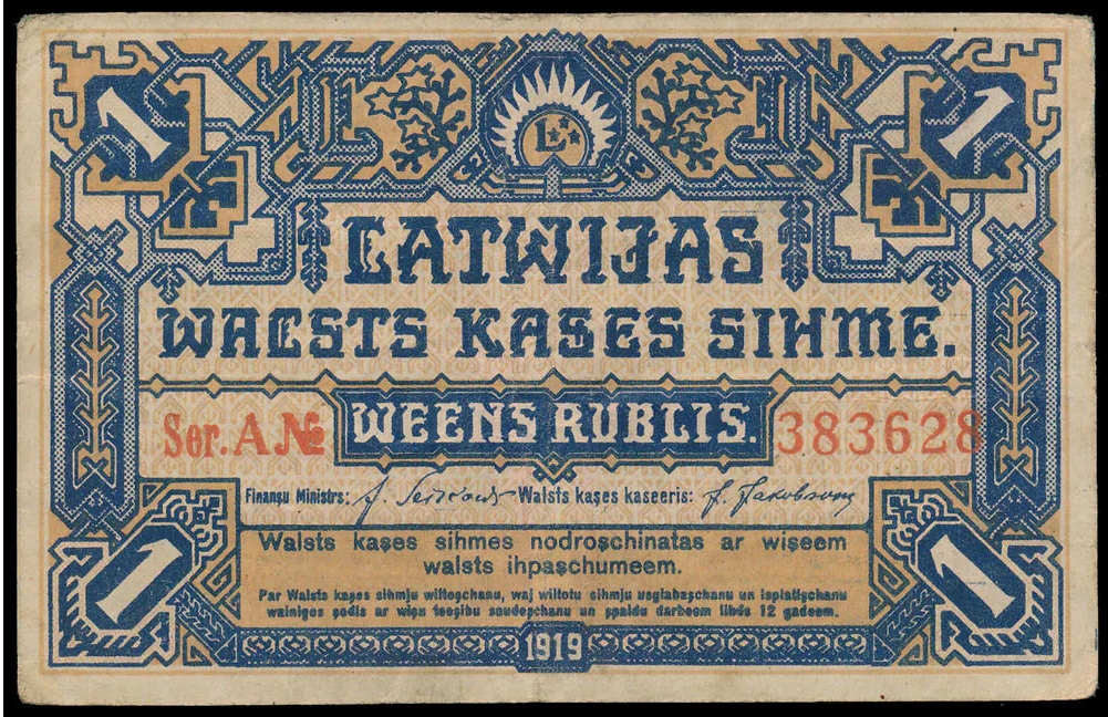 LETTONIA 1 BANCONOTA DA 1 RUBLO 1919 SERIE A BELLISSIMA