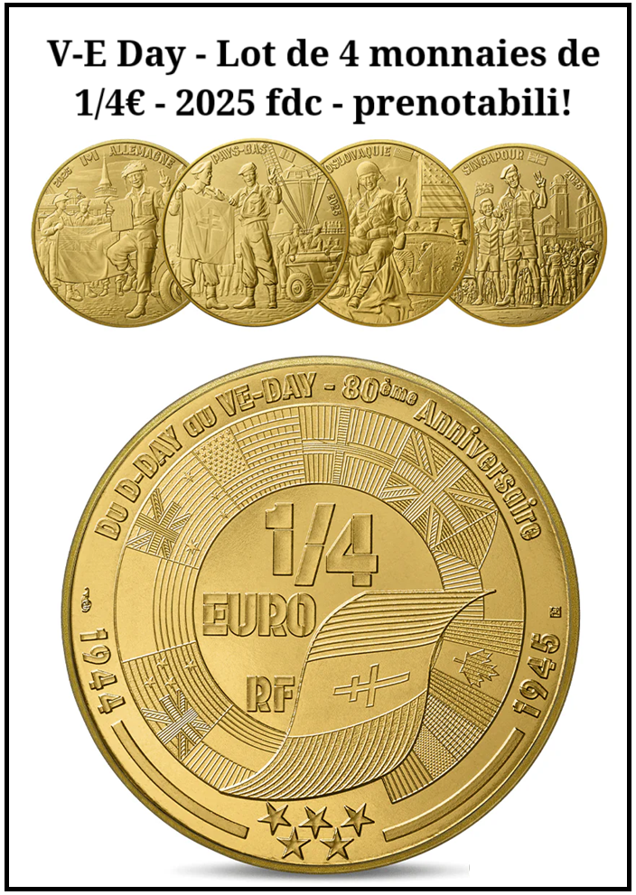 LOTTO DA 4 MONETE DA 1/4 DI EURO FRANCIA 80 ANNIVERSARIO D-DAY V-D FDC