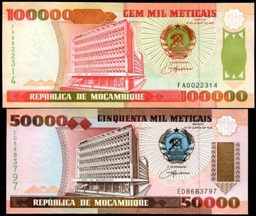 MOZAMBICO SET 2 PCS 50,000 + 100,000 METICAIS 1993 UNC FDS NUOVE