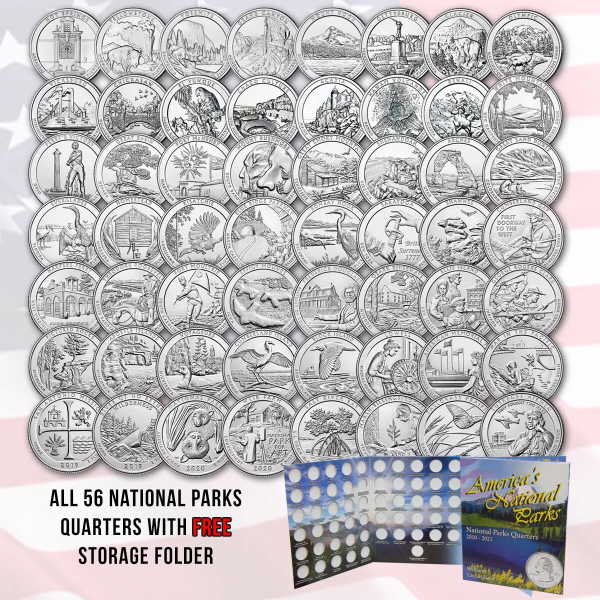 PRENOTABILE: SET COMPLETO PARCHI NAZIONALI AMERICANI 56 MONETE QUARTO DI DOLLARO