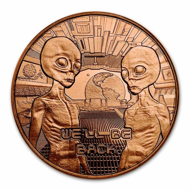 RAME 1 ONCIA DI RAME FINE 999 AREA 51 ALIENS WE’LL BE BACK – FDC