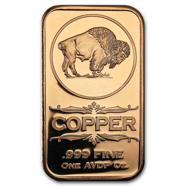 RAME LINGOTTO DA 1 ONCIA DI RAME FINE 999 BUFFALO FDC
