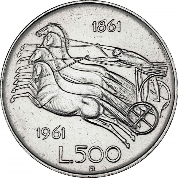 REPUBBLICA ITALIANA 1 MONETA IN ARGENTO DA 500 LIRE 1961 “QUADRIGLIA”
