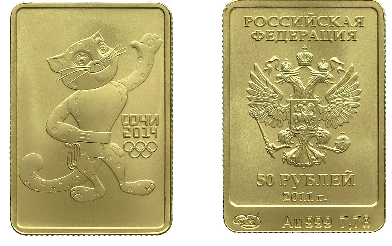 RUSSIA, 1 MONETA DA 50 RUBLI 2011, OLIMPIADI DI SOCHI – Il Gattopardo (1/4 Oz) ORO