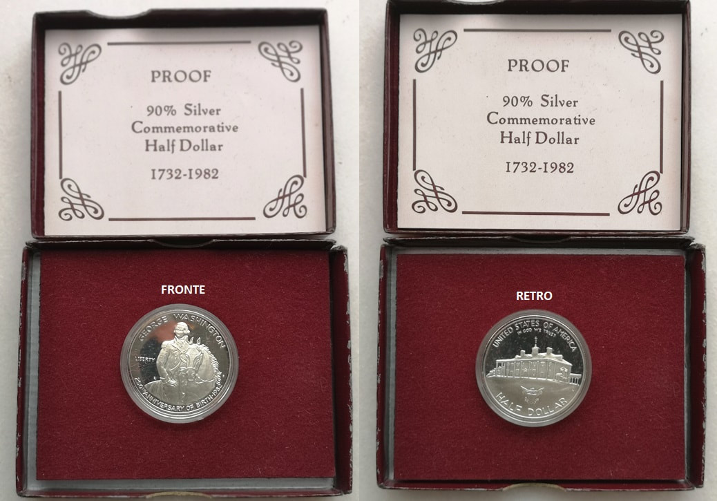 U.S.A. MEZZO DOLLARO HALF DOLLAR 1982 ARGENTO PROOF GEORGE WASHINGTON IN CONFEZIONE ORIGINALE