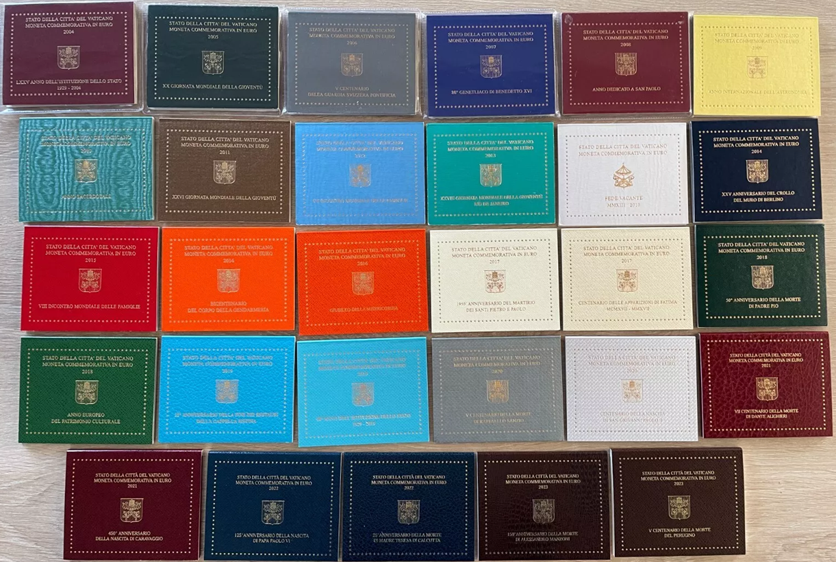 VATICANO TUTTI I 2 EURO COMMEMORATIVI IN FOLDER DAL 2004 AL 2023 COMPRESI